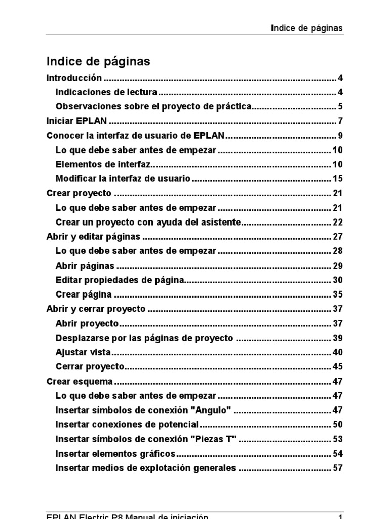 Indice de páginas eplan electric p8 manual de iniciación 1.